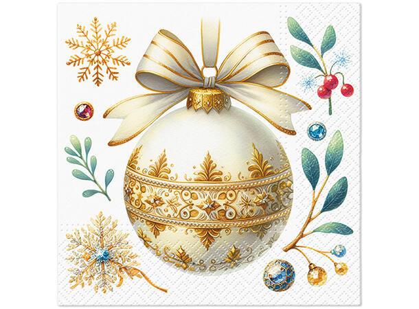 Kaffeserviett - Julekule i gull