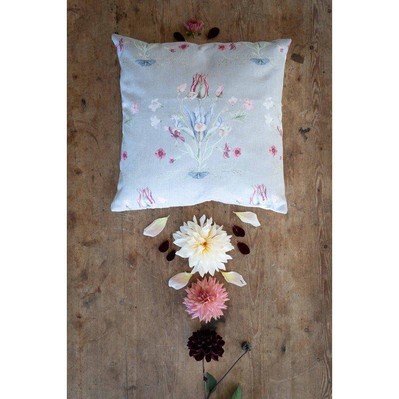 Putetrekk med et romantisk blomstermønster på forsiden, laget av et mykt og komfortabelt stoff som gir en behagelig følelse. Baksiden er i en matchende ensfarget farge, noe som skaper en vakker balanse mellom mønster og enkelhet.